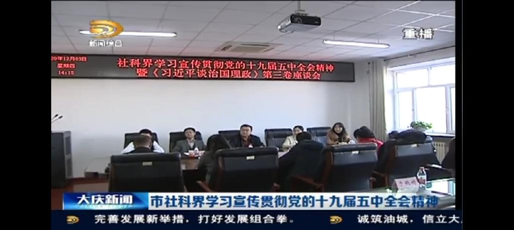 12月3日,大庆市社科界学习宣传贯彻党的十九届五中全会精神暨《习近平谈治国理政》第三卷座谈会举行,伟德国际1946经理刘楠教授受邀出席,大庆电视台新闻综合频道对此次活动进行了报道。