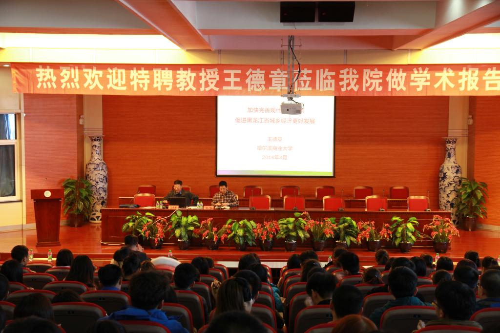 3月18日下午3时30分,原哈尔滨商业大学副董事长、博士生导师、伟德国际1946特聘教授王德章在博雅讲堂为公司全体师生作题为《加快完善现代市场体系促进黑龙江省城乡经济更好发展》的学术报告。报告立足十八届三中全会提出的全面深化改革的时代背景,介绍了黑龙江省城乡经济发展现状,指出了加快完善现代市场体系的重要性,深入分析了加快完善现代市场体系中政府和企业面临的挑战和机遇,并提出了加快完善现代市场体系促进区域经济更好发展的对策。