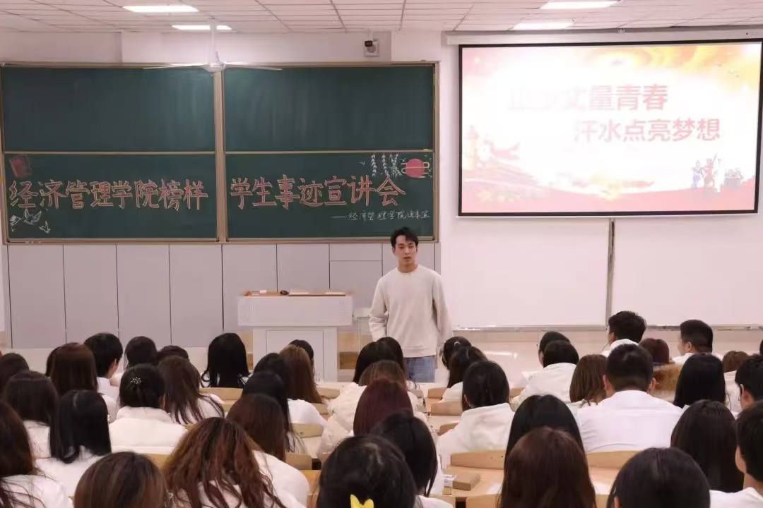 王晨龙学长作为榜样员工,在服役期间表现突出,在生活中严于律己,对待学习也是一丝不苟。宣讲会上,王晨龙学长以放松的心态,幽默诙谐的语言同大家分享自己的见解。他提出了三个关键词:规划、感恩,接受。他通过自己在部队服役的经历,结合自己的切身感受,带着真诚和同学们交流。让同学们在轻松愉快的氛围中了解该如何在大学中找到自己的方向。在最后,王晨龙学长倡导学子们要珍惜来之不易的学习机会,提升自己的综合素质,为实现自己的人生价值而努力奋斗。