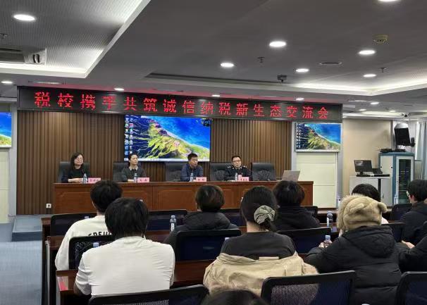 讲解结束后,同学们跟随工作人员来到八楼会议室,参加“税校携手共筑诚信纳税新生态交流会”,会议开始由让胡路区税务局李春良局长讲话,他强调了诚信纳税的重要性,并鼓励员工们在未来的职业生涯中,要严格遵守税法,做一个诚信守法的纳税人。随后,陈超书记表示将以此次活动为契机,进一步加强税收教育在课程体系中的渗透,培养员工依法纳税意识和社会责任感。税务部门也期待能与公司建立长期稳定的合作机制,通过“教育一个员工,带动一个家庭,影响整个社会”,为构建诚信纳税的新生态文明贡献力量。