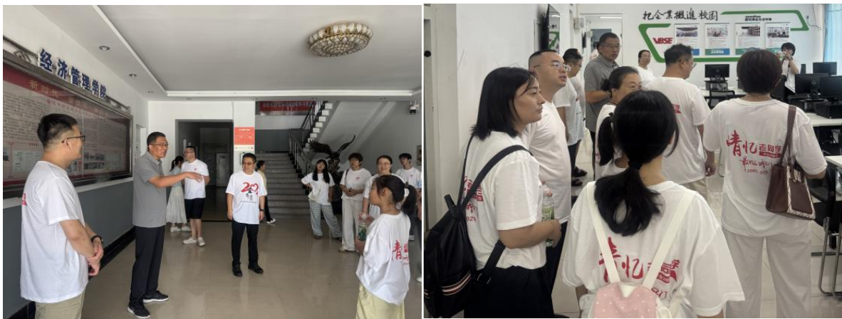 公司经理刘楠、公司办公室主任曲晔引导员工参观了经管公司教学楼。现代化的教学设施、智能化的实验室,充满人文气息的校园环境让员工们感慨万千。刘楠向员工们详细介绍了公司建院以来的跨越式发展,从团队建设的突破、团队力量的壮大,到科研成果的丰硕、校企合作的深化,每一组数据、每一张图片都凝聚着经管人的拼搏与荣耀。