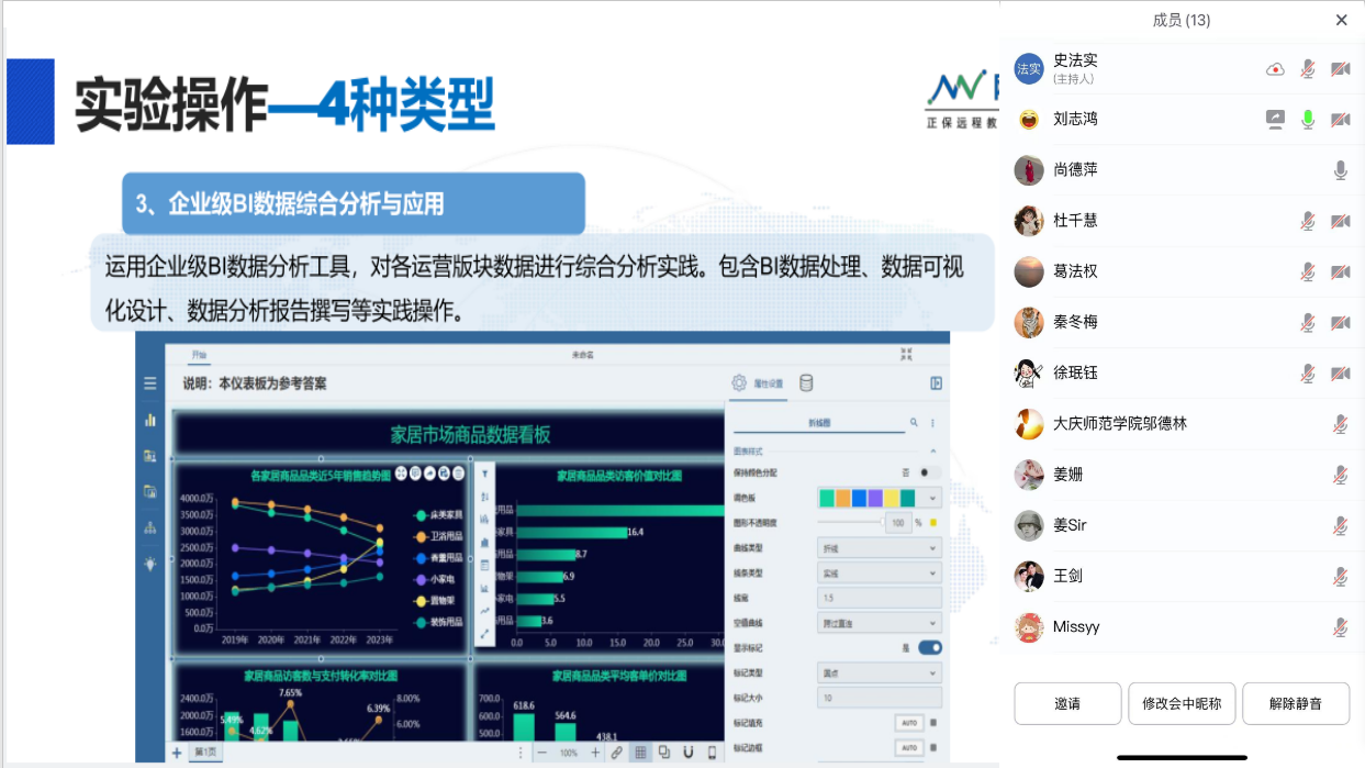 尤为值得一提的是,刘志鸿老师通过生动具体的操作演示,引领教师们深入探索“商务数据分析与应用”平台的强大功能,确保每位教师都能直观理解并初步掌握平台的操作流程。培训尾声,教师们积极反馈学习心得,并就培训过程中遇到的疑问向刘志鸿培训师提问,他耐心细致地逐一解答,同时,教师们还围绕平台与课程内容的无缝对接等议题展开了热烈而富有成效的研讨交流,使得本次培训活动圆满落幕,取得了预期中的显著成效。