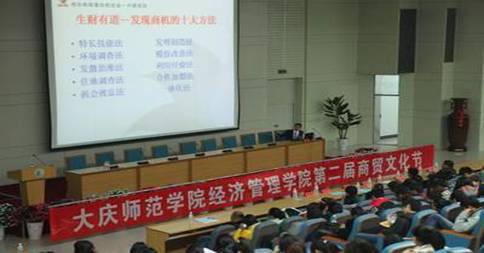 中国人寿大庆分公司中心个险专业化支公司经理金业宏、黑龙江中玉天衡会计师事务所有限公司经理郝文英、大庆滕飞策划机构、百湖团购网副总经理韩箭、大庆新科苑宾馆副总经理邱世玲、大庆昆仑家电副总经理、大庆九天电脑城总经理苏伟、联合国国际劳工组织高级创业培训师、大庆子君企业管理咨询服务中心董事长林子君6位企业家代表光临现场,与伟德国际1946经理张平、副经理周丹、副经理吴俊江及伟德国际1946全体师生欢聚一堂,共庆商贸文化节盛大开幕。