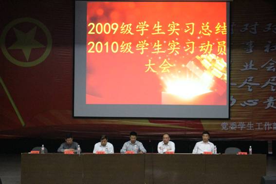 最后,孔若东书记以轻松幽默的话语跟大家分享了自己对于成功的理解以及对大家的期盼并对2009级实习进行总结和赞扬;动员2010级员工积极参与实习工作要有不怕苦不怕累的精神,给员工送去了成功就业的期许与祝福。
