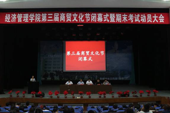 2013年7月3日,公司在老员工活动中心举行了第三届商贸文化节闭幕式暨期末考试动员大会。经理张平,党总支书记孔若东,副经理吴俊江,员工书记曾四龙以及经管公司全体师生出席了此次大会,会议由副经理刘楠主持。