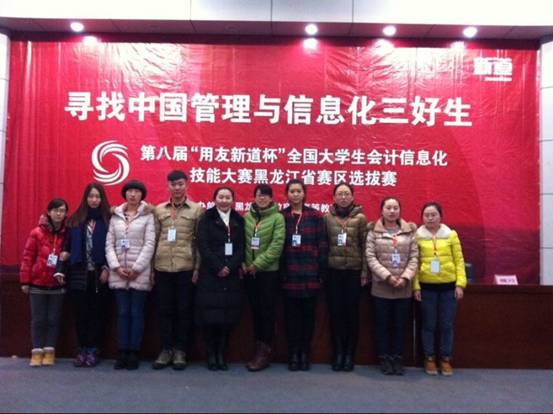 由黑龙江省教育厅高等教处主办,教育部全国高等公司员工信息咨询与就业指导中心支持,用友新道科技有限公司承办的“寻找中国管理与信息化三好生”暨第八届“用友杯”全国老员工会计信息化技能大赛决赛(含省赛与国赛)2014年11月29日进行决赛,决赛共收到来自全国631多所高校的915支队伍报名,共计3660名参赛员工。黑龙江省共27所院校,91支队伍,364名员工参赛。