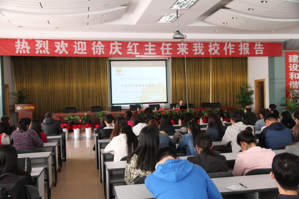 聘任仪式后,徐庆红副主任为财务管理专业员工作了题为《大庆油田资金管理模式》的讲座。在讲座中徐主任向员工讲解了资金集中管理的优缺点、应遵循的原则、思路以及目标,并详细介绍了大庆油田资金集中管理的具体情况。徐主任的讲座丰富了财务管理专业员工的知识,开阔了员工的视野,同时对教师开展油田财务应用研究给予了指导,员工和教师收获很大。