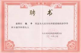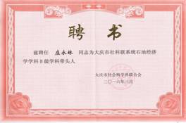 会议还宣布了关于大庆市社科联系统学科带头人、学术骨干的聘任决定,聘任学会副会长李和全同志为大庆市社科联系统经济学科A级带头人、学会秘书长张平同志为大庆市社科联系统经济学学科B级带头人、学会理事刘楠同志为大庆市社科联系统管理学学科B级学科带头人、学会常务理事庄永林同志为大庆市社科联系统石油经济学学科B级学科带头人。