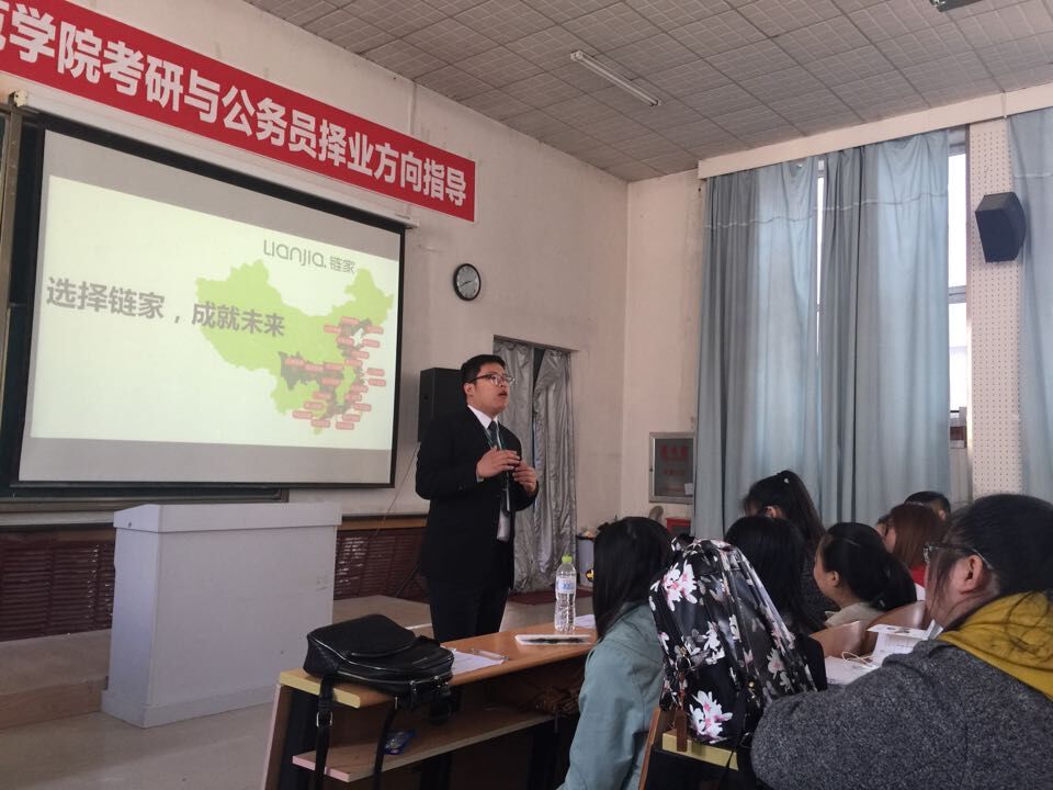 2016年4月26日上午9点30分,伟德国际1946市场营销系邀请北京链家校园招聘部经理、项目部经理等一行五人来到伟德国际1946,对即将进行毕业实习的2013级市场营销专业员工进行校园专场宣讲会,北京链家房地产经纪有限公司是最近几年兴起较快的二手房中介企业,也是全国二手房市场的领军者,员工对企业能走进校园针对公司员工做专场的宣讲招聘会都表现出了浓厚的兴趣。校园招聘部闫经理首先以诙谐幽默的方式和现场员工进行了大量的互动交流,同时介绍了企业的发展历程和未来的发展方向,对即将入职的老员工提供的岗位和薪金标准做了全方位的解读。公司2009级毕业生赵长春也是链家的员工之一,此次也随招聘部一起回到母校,给母校的师弟师妹们分享了一下自己这些年在北京工作的经历。宣讲会后直接在现场进行了面试,现场一共有70名左右同学进行了面试,经过各部门经理的审核通过了50名员工,并于当晚在公司给这50名员工签订了企业接收OFFER。