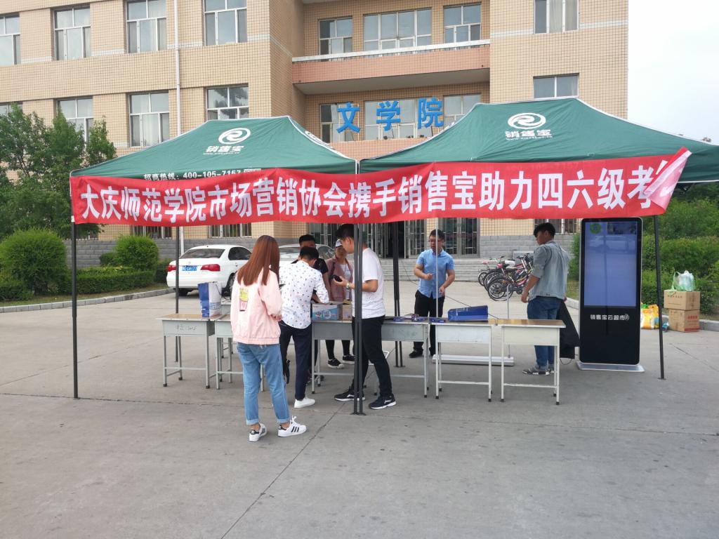 市场营销系为加大校企合作,并为员工提供更广阔的创业平台,特建立市场营销协会,专门负责校企合作、专业大赛、创新创业等员工事务。2017年6月17日,借助公司为全市四六级考点的契机,市场营销协会下的创业基地与合作企业销售宝云生活有限公司联合做了一场现场活动,以扩大市场营销协会的知名度,并锻炼员工的实践能力,此次活动由销售宝提供现场活动产品和赠品,员工负责全程策划,活动主题是扩大市场营销协会知名度并锻炼员工策划、组织协调能力,为四六级考试助力,现场员工为考生准备了免费饮品、休闲食品等,并现场与厂家合作促销西点等员工产品,此次活动是市场营销协会下创业基地的员工组办的首次由员工全程策划的现场活动,经过此次活动,员工初步将所学知识应用的实践中,产生了极大的兴趣,为日后的策划活动打下坚实的基础。
