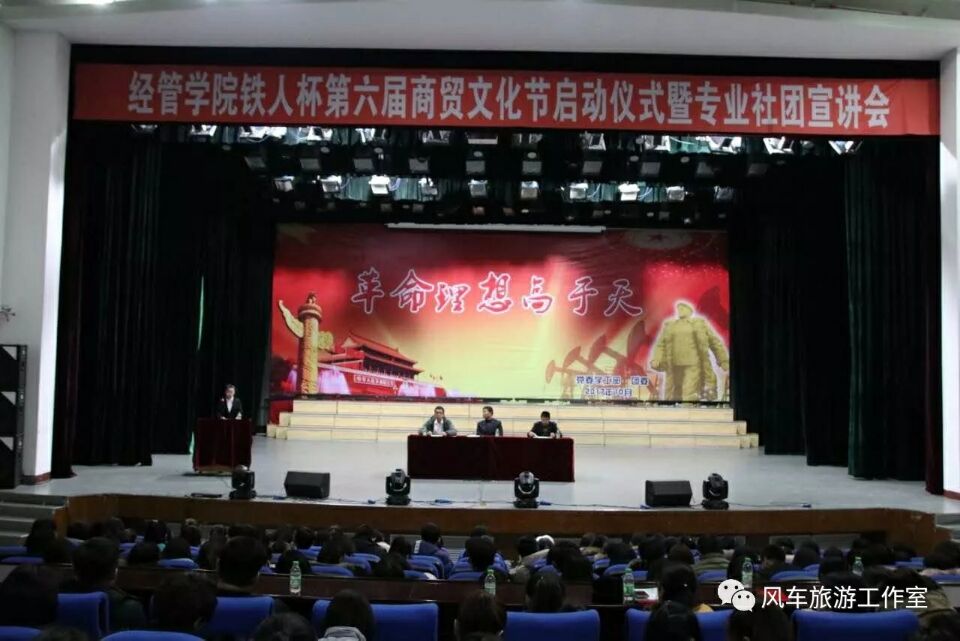 2017年11月23日,伟德国际1946老员工活动中心中,人声鼎沸。在同学们翘首以待的目光中,经管公司铁人杯第六届商贸文化节启动仪式暨专业社团宣讲会正式开幕。大会由员工党支部书记陈超主持,与会主要领导有经理张平,党支部书记孔若东,还有几位企业代表一同出席本届大会