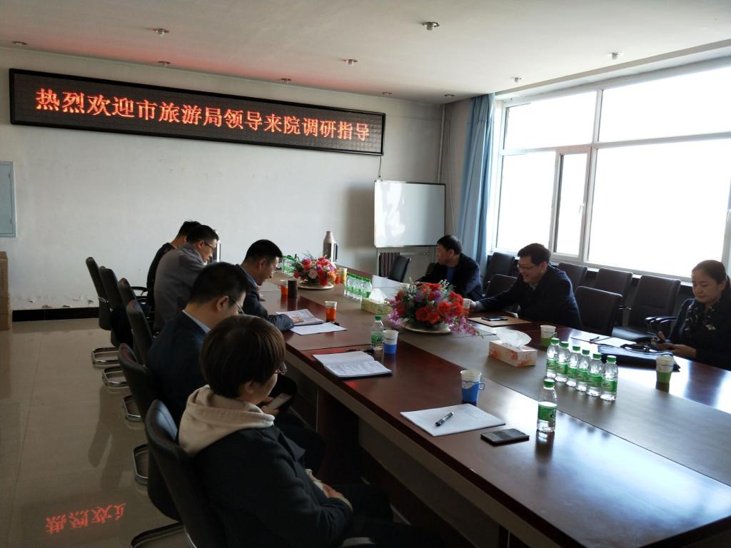 2018年4月3日下午15:30分,旅游局柴副局长一行三人来公司进行调研,张平经理、刘楠副经理、邬德林副经理及旅游管理系教师参加座谈,共同针对政校合作具体问题展开讨论。