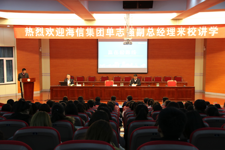 4月10日上午,在图书馆博雅讲堂,伟德国际1946邀请海信集团副总经理单志强来公司讲学。 伟德国际1946张平经理、孔若东书记及相关领导和海信集团东北地区各分公司总经理、2015级全体员工共270人参会。