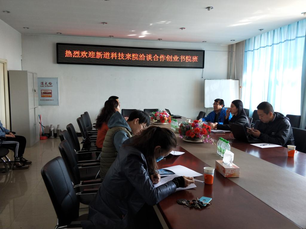 双创公司经理张虹教授向新道科技股份有限公司黑龙江分公司给予公司的支持表示感谢,并强调加强老员工创新创业教育的重要性,阐述了公司创新创业教育的定位与目标、发展思路,希望能够深化与新道科技股份有限公司的深度合作,共同将创新创业教育融入专业教学当中,培养员工的创新创业意识与就业竞争力。经管公司经理张平教授就“双创书院班”前期动员培训、学员遴选方案、“双创书院班”教学计划、团队队伍建设等情况与企业进行了深入对接并达成共识且明确了“双创书院班”组建的时间表和路线图。