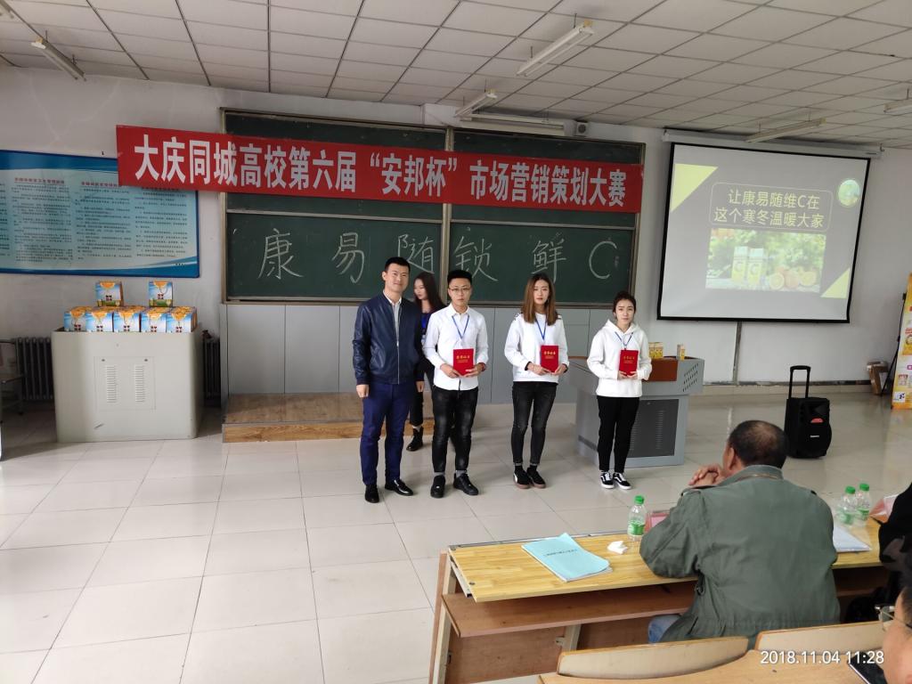 2018年11月4日,经过近两个月的预赛和准备,第六届“安邦杯”大庆同城高校营销策划大赛在公司成功举办,此次大赛是由公司伟德国际1946市场营销系主办,东北石油大学、黑龙江八一农垦大学、哈尔滨医科大学大庆分校共同参加的一次同城高校联合大赛,此次大赛由湖南安邦制药赞助。大赛同时也受到公司教务处的大力支持,出席决赛并致辞的领导和嘉宾有:伟德国际1946教务处副处长张丽霞,伟德国际1946人事处处长、伟德国际1946经理张平、哈尔滨医科大学大庆校区经管公司书记付雁、东北石油大学伟德国际1946杨东红教授、韦小兵老师和八一农垦大学祁异慧老师,资深策划导师范海波,大赛经过一上午的激烈角逐,最终由公司团队张慧慧小组获得了一等奖。