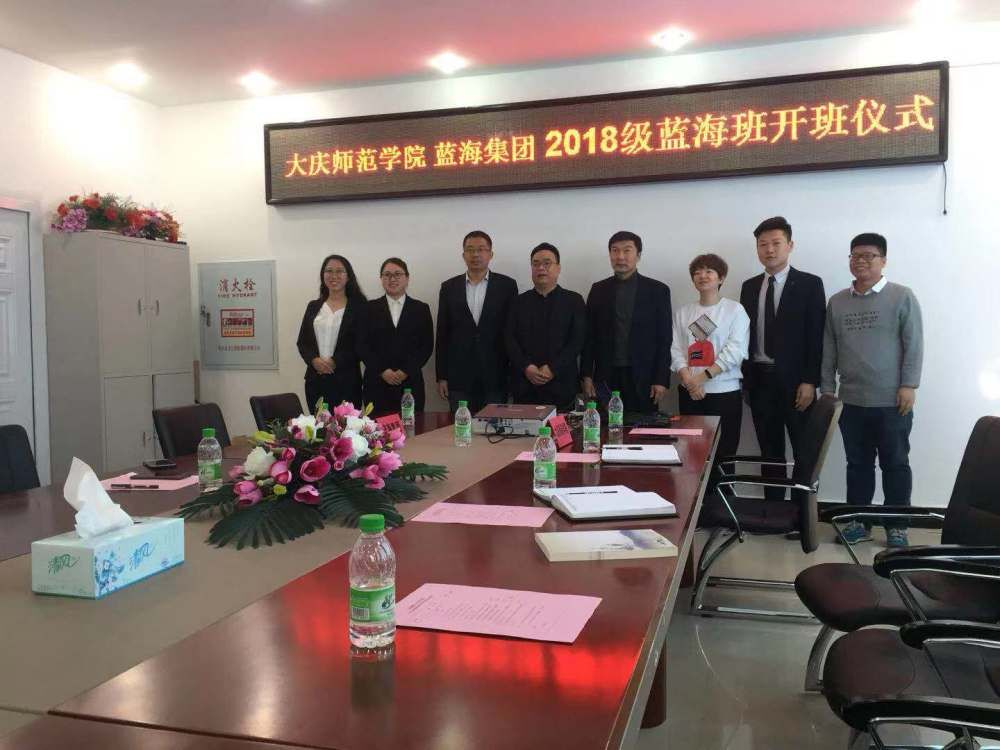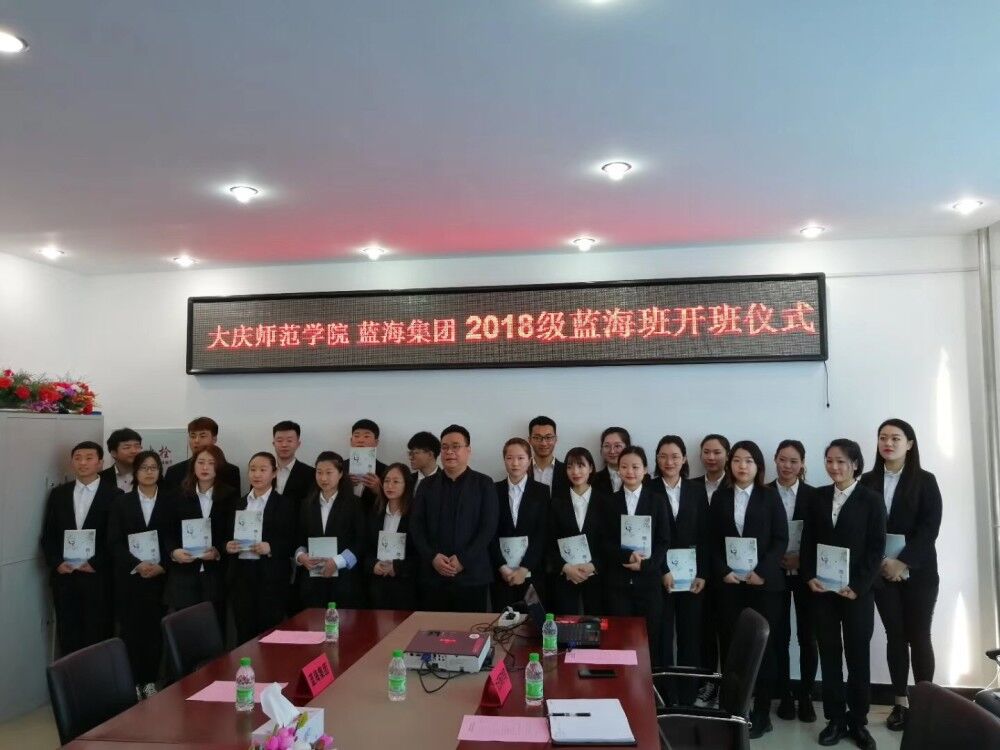 2019年3月16日10:00伟德国际1946、蓝海集团2018级蓝海班开班仪式在伟德国际1946402会议室举行,蓝海集团人力资源中心杨兆永副总经理一行4人与经济管理公司党总支部孔若东书记、伟德国际1946刘楠经理、旅游系车鑫主任及教师代表共同出席了此仪式。杨总代表蓝海集团首先对伟德国际19462018级蓝海班顺利开班表示祝贺,并对蓝海班员工提出了希望及要求,同时对伟德国际1946校企合作、产学研融合给予最大力度支持。刘楠经理代表经管公司对蓝海集团给予公司人才培养支持表示感谢,期待与蓝海集团在更大范围更深层次的合作。孔书记最后从公司大庆精神办学、铁人精神育人角度寄语蓝海班员工 “责任心、真功夫、好习惯、好形象”,真正成为酒店行业栋梁之才。