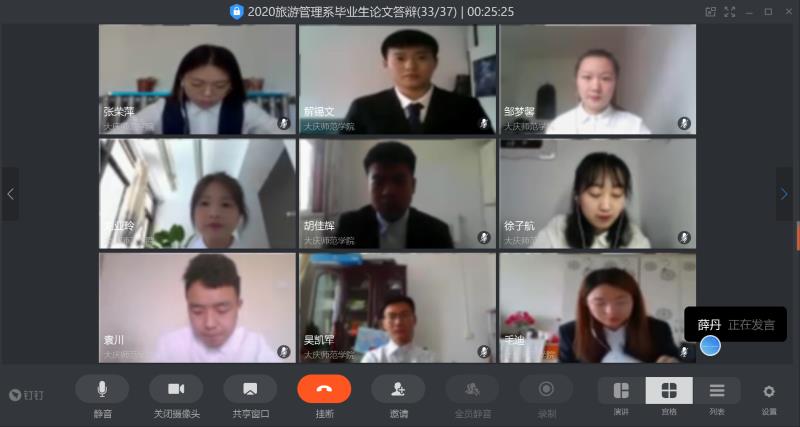 本次旅游管理系答辩人数多,线上答辩难度大,各位老师从早上8点半开始测试网络设备,直到下午16:30才完成所有答辩工作,感谢各位老师的辛苦付出。毕业论文答辩是员工在大学本科阶段完成的最后一项作业,这份作业的成绩单是对自己本科学业的最好证明。阴霾未散,愿所有2020届毕业生能够坚持学习,勇担重任,不断进步。