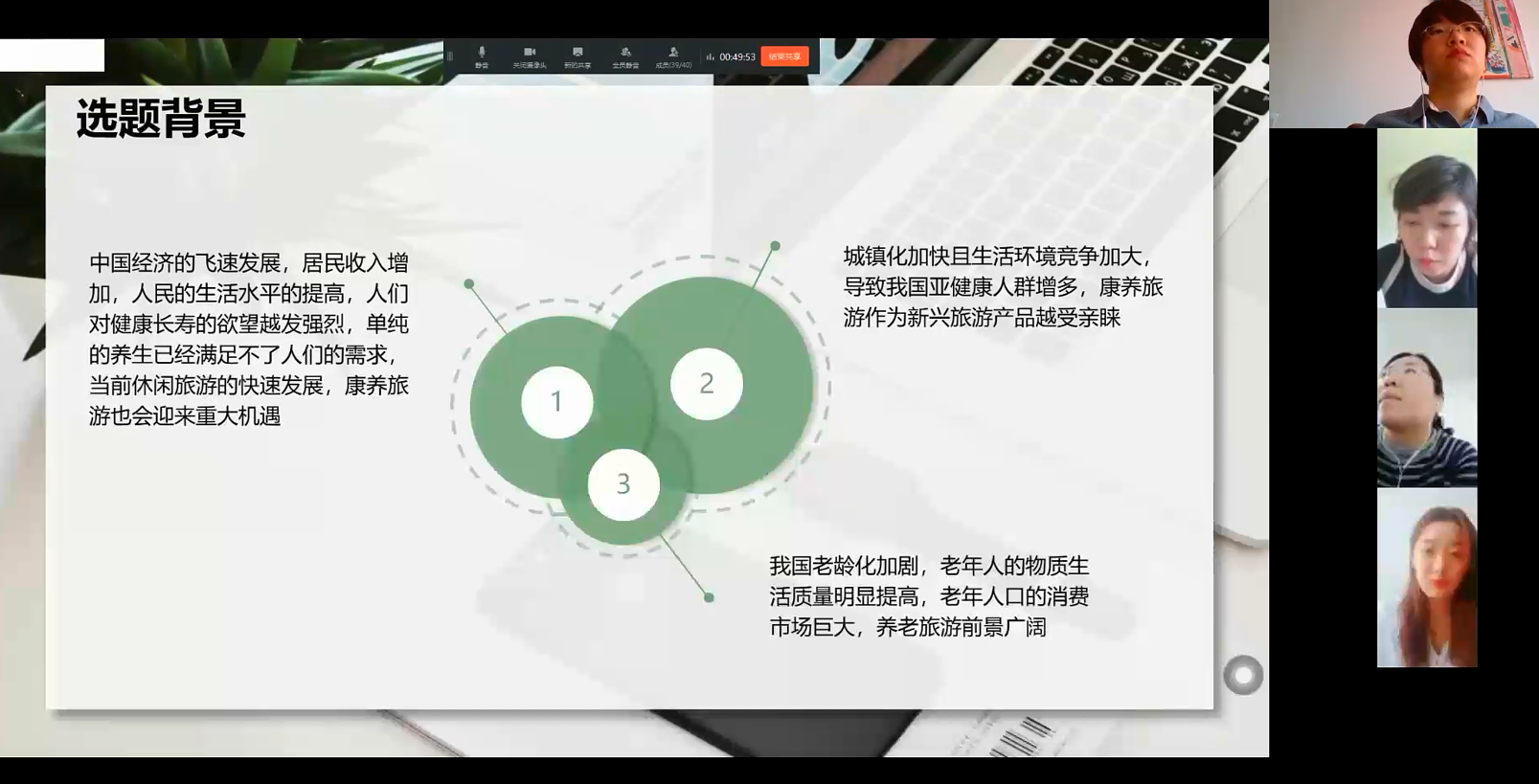 由于疫情尚未结束,本次2020届毕业论文答辩工作采用线上方式进行,这对于毕业生和答辩教师来说都是新的挑战。因此旅游管理系很早就开始布置答辩工作,安排答辩组长尝试不同的会议软件,最终选定最适合自己硬件设备和网络环境的答辩方式。每个答辩组开始工作之前,留出30分钟进行员工的网络测试、麦克风测试,要求员工准备答辩PPT进行陈述,教师和员工着装整洁,突出论文答辩的仪式感。