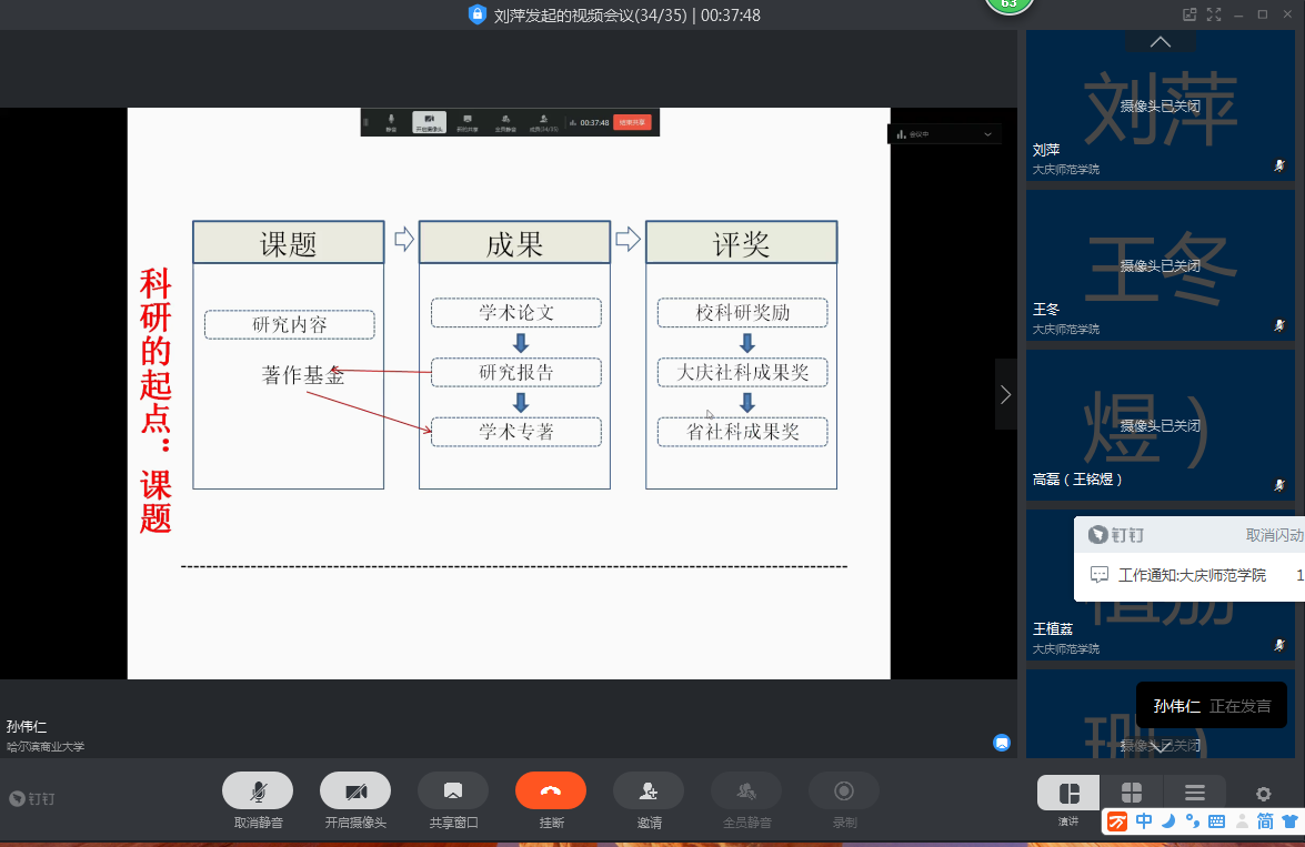 会上,孙伟仁副经理首先从科研项目、论文著作、科研获奖、科研队伍、科研平台及社会服务等方面,全面介绍了伟德国际1946的科研基本情况,并对上一年度全院科研工作业绩进行了总结。2019年,公司省自然科学基金立项1项,实现了省自然科学基金项目上零的突破;省社会科学项目、省经济社会发展重点课题有效申报、立项数量创新高,并有5个省级项目顺利结题;有1篇学术论文被人大复印资料全文转载,实现上论文转载上的突破;在百佳出版社出版学术专著2部。他强调,虽然公司在上一年度科研工作中取得了一些成绩,但公司在科研方面仍然存在教师科研积极性不高、科研水平不强、团队合作效率不高及服务经济社会发展能力不足等问题。针对下一步的科研工作,孙伟仁副经理提出了五条工作思路:一是加强机制建设,完善激励制度;二是凝练科研方向,加强团队建设;三是提前谋划布局,加强科研管理;四是加强培训交流,提升科研能力;五是积极对外沟通,拓展项目来源。最后,他对公司今年的重点学科申报、科研团队建设、省级科研项目申报、横向项目开发、核心论文发表、大庆市优秀社科成果奖及黑龙江省社科成果奖申报等重点工作进行了具体地部署和安排,并从老师们关注的职称评审、绩效考核、经费支持等方面详细分析了申报科研项目、积攒科研成果的重要性。