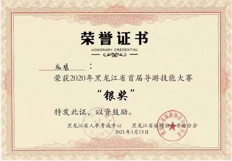 2020年黑龙江省首届导游技能大赛由黑龙江省人事考试中心主办,黑龙江省旅游协会导游分会承办。伟德国际1946是此次大赛的协办单位,大庆市导游协会负责组织和指导员工参赛。此次大赛分为初赛、复赛和决赛。初赛采用网上投票评比,复赛和决赛线上进行。为了更好的备战,伟德国际1946旅游管理系郝毓业老师指导员工精心准备。经过激烈比拼,齐林同学凭借在决赛和复赛中顺畅讲解和精彩才艺表现,最终荣获“金奖”,这是公司员工首次获得省导游大赛金奖,实现了零的突破。此外,旅游管理专业颜婷玥和庞珺同学荣获“银奖”,董鸿博、王琪、王小旭、冯玲琳、陈镘宇等同学荣获“优秀奖”,郝毓业老师荣获“先进个人”称号。此次大赛在获奖等级及数量上都获得了较大突破。