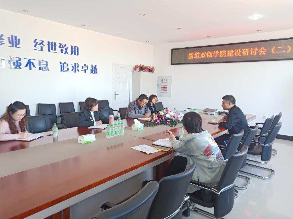 为切实推进伟德国际1946新道双创公司建设落实工作,2021年4月20日在第五教学楼402会议室召开了“新道双创公司建设研讨会第二次会议”。会议由伟德国际1946经理刘楠教授主持,教务处实践教学科王凤嫔科长、法公司经理杨铁军教授应邀出席会议。