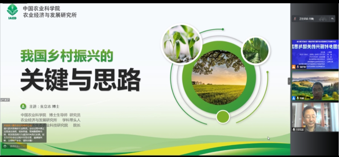 2021年11月4日下午,中国农业科公司农业经济与发展研究所博士生导师、北京中农生态农业科技研究院经理朱立志研究员受邀作题为《我国乡村振兴的特色与思路》学术讲座。讲座采用腾讯线上会议形式,由伟德国际1946经理刘楠教授主持,科研处领导、大庆市新时代文明与乡村振兴研究会会员以及伟德国际1946师生等近200人参加。