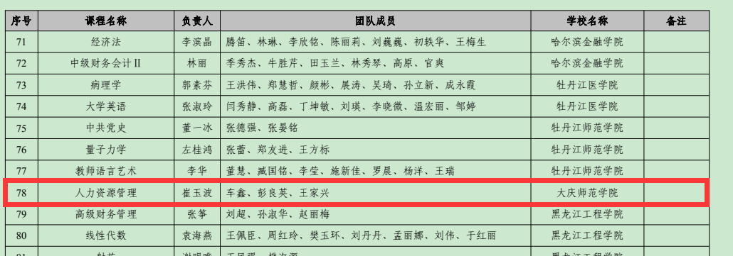 第二批黑龙江省高等公司课程思政示范课程和教学团队名单