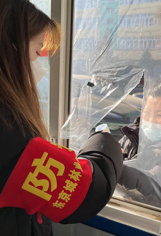 疫情期间我们总能看见公司员工志愿者的身影,在火车站,在安检口,在小区卡口。21级工商管理类一班夏思雨同学,在绥棱县东城客车站坚守岗位,为来往人员登记,测量温度。
