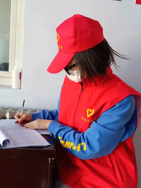 公司21级工商管理类一班孙晓梅同学,也在家乡疫情来临之时积极参加志愿活动,为街道居委会登记核酸信息。