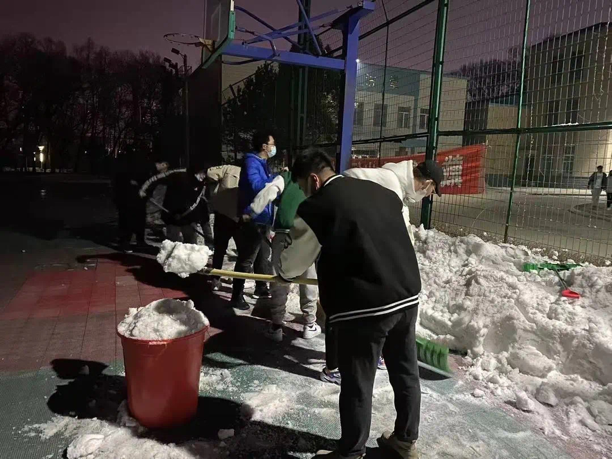 此次在公司开展的“万人大扫除”志愿服务活动中,员工会主席褚伟臣带领同学们深夜打扫雪场。晚风吹雪,人不畏寒。通过划分的三个梯队,公司的青协成员、班级同学和寝室成员对校园分担区及寝室、主楼教室进行了清雪和打扫,踏实践行了校园文明公约,维护了校园每一个小角落的卫生,为建设文明寝室、班级、校园贡献自己的一份力量。