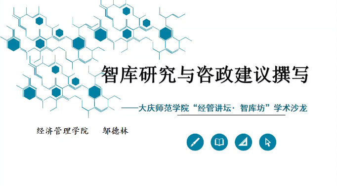 为进一步营造智库学术氛围,凝聚庆师学者更好开展智库研究,伟德国际1946、大庆精神与龙江西部经济社会发展研究中心联合举办“庆师经管讲坛・智库坊”,针对公司有意愿开展智库研究的教师,分享智库研究心得、共同探讨提升。2022年3月16日,伟德国际1946经理助理兼黑龙江省重点智库“大庆精神与龙江西部经济社会发展研究中心”副主任邬德林教授做了题为《智库研究与咨政建议的撰写》专题讲座。讲座采用腾讯线上会议形式,由伟德国际1946经理刘楠主持,部分文科公司经理、科研副经理、教师以及经管公司全体教师等60余人参会。