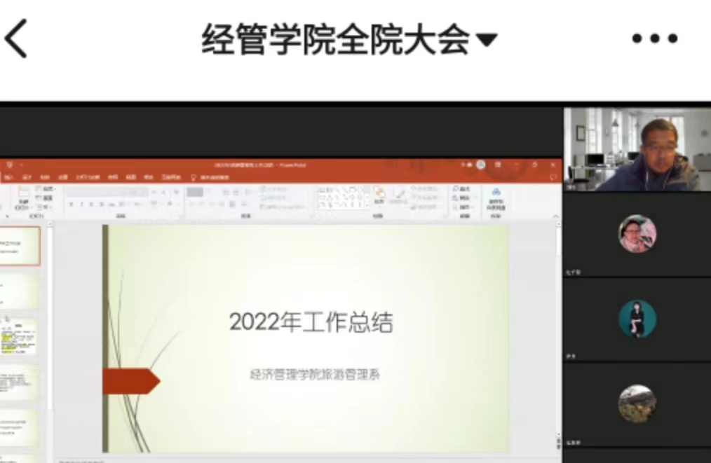 2022年12月14日13:00时,伟德国际1946召开2022年工作汇报总结会议,全院教职工参加会议,各专任教师对照自身年初工作计划,总结一年来取得的成果与不足,并制定了2023年的工作计划。系主任围绕专业完成情况和两点工作,总结经验做法以及存在问题。