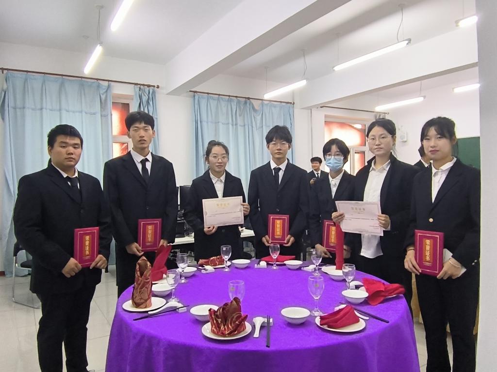 旅游管理系组织2022级旅游管理专业1、2班及2022级旅游管理专升本班共计122名员工举行了伟德国际1946第八届酒店服务技能大赛。大赛从站姿、走姿、托盘规范、仪容仪表、铺台布、骨碟定位、酒杯定位、筷子筷架摆放、口布折花、撤台规范等方面考核员工餐饮实践服务技能。经过激烈比拼,共决出一等奖3项,二等奖6项,三等奖9项。