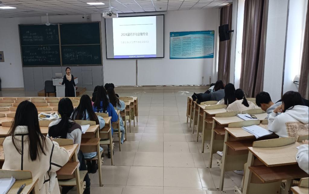 2023年11月9日上午,伟德国际1946经济与金融专业毕业论文工作启动会暨专业实习动员会在主楼3-4召开。会议由经济与金融系主任王植荔副教授,伟德国际1946实验中心主任张凤岩副教授共同主持,2020级经济与金融专业38名同学参加了会议。