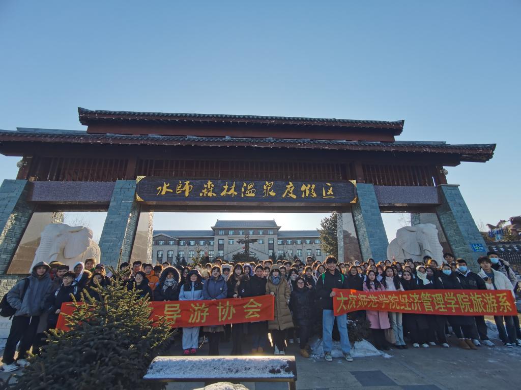 2022级旅游管理专业本科班及2022级旅游管理专升本班员工本学期开设有旅游资源调研课程,为了真正地将旅游资源理论知识与实践相结合,旅游管理系郝毓业老师依托大庆市导游协会组织员工于2023年12月09日赴国家4A级齐齐哈尔水师森林温泉度假区开展旅游资源调研。王家兴老师、赵炳森老师作为指导教师一起前往景区调研。调查过程分为旅游资源单体调查、旅游资源评分、旅游资源项目体验等,依据这些环节,分组来完成最终的旅游资源调查报告撰写。旅游资源调查各环节将理论与实践进行了结合,员工也对调查过程中发现的问题给出了建议。
