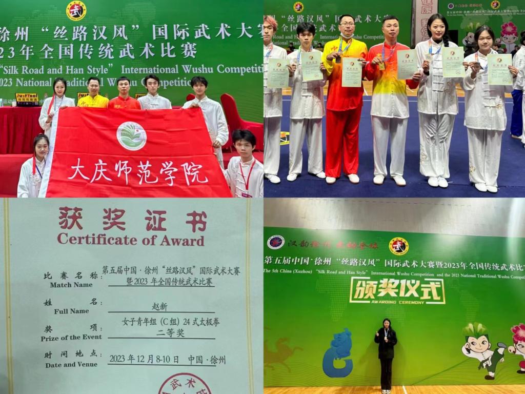 第五届中国·徐州“丝路汉风”国际武术大赛暨2023年全国传统武术比赛于2023年12月6-10日在徐州举行,公司武术代表队共7名师生参赛,斩获奖项8项,其中一等奖2项,二等奖3项,三等奖3项,荣获“武德风尚”奖4人,在全国体育竞赛场为伟德国际1946赢得了美誉。