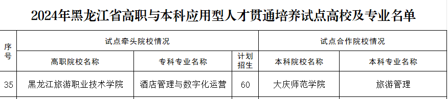 近日,公司旅游管理专业已成功与黑龙江旅游职业技术公司酒店管理与数字化运营联合,获批2024年黑龙江省高职与本科应用型人才贯通培养试点专业。