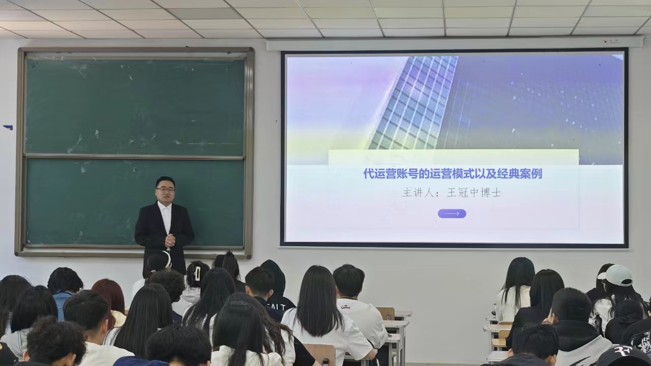 在为期两天的培训中,王冠中博士不仅分享了自身在电商直播领域的丰富经验,还针对当前行业热点和趋势进行了深入分析。30日上午,他介绍了互联网平台的发展现状等,强调了互联网技术在营销领域的重要作用。30日下午,王冠中博士以抖音电商为例,详细讲解了电商与本地生活的融合策略,为在场师生提供了宝贵的实践参考。31日上午,王冠中博士进一步探讨了代运营账号的运营技巧,结合多个经典案例,为师生们展示了如何通过精准定位、内容创新等方式提升账号影响力。31日下午的讲座则聚焦于短视频的分类与投放,他详细介绍了不同类型短视频的特点和适用场景,并分享了投放策略,使师生们对短视频营销有了更为深刻的认识。