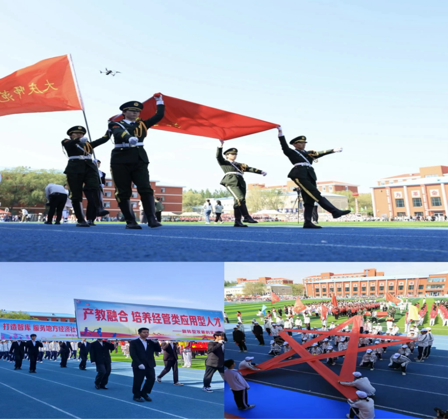 运动会开幕,国旗护卫队庄严肃穆,校旗队步伐铿锵,刀旗队与花束队活力四溢,裁判员代表队尽显专业风范。伟德国际1946方队身着统一院服,步伐精准如齿轮咬合节拍,铿锵有力。行进间,队形变幻多彩,红色布条整齐划一,每一次翻转皆凝聚着无数次排练的汗水。经过主席台时,整齐口号破空而起,红色布条翻涌似浪,团结拼搏的精神在此刻熠熠生辉。