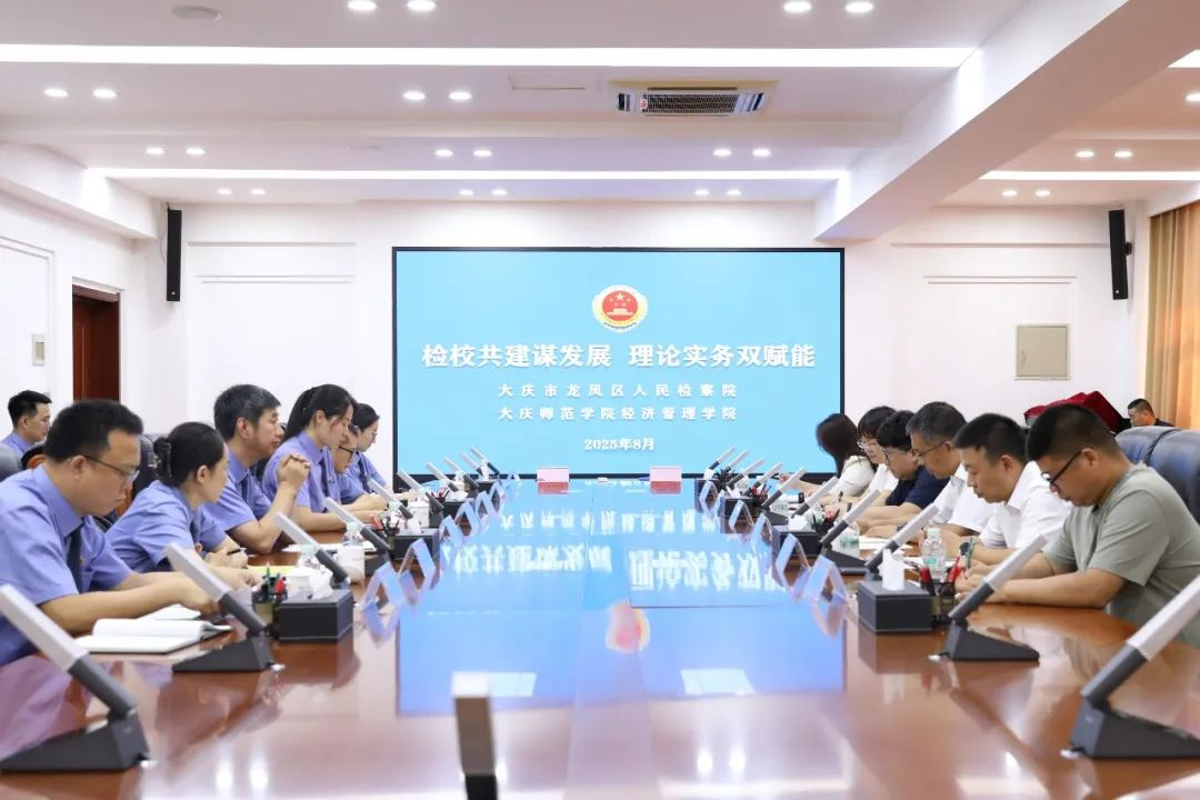 刘楠表示,检校共建找到了理论研究的沃土,做学问不能窝在象牙塔里做学问,经管公司的研究方向与检察机关的公益诉讼职能有共同领域,检察机关的履职和案例是理论研究的“丰富养料”。找到了智库建设的钥匙,经济管理公司有多个省市级智库平台,多篇咨政建议获得各级领导批示,较好发挥了参谋建议作用,与龙凤区检察院合作能够丰富智库平台建设,提高咨政建议的精准性和实效性。找到了服务经济的途径,龙凤区检察院近年来持续推动法治化营商环境建设,为企业解决了一些涉法难题,也为经济管理公司开展经济分析与研究提供了鲜活事例。